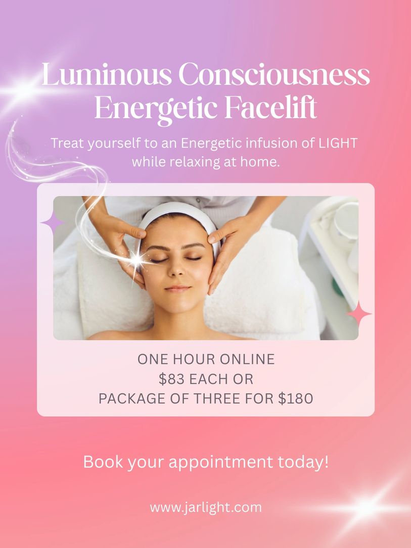 Luminous Consciousness Energetic Face Lift is a transformational, light-touch, healing technique that activates revitalizing energies to restore clarity, radiance, and youthful luster to the skin, body, and mind!
